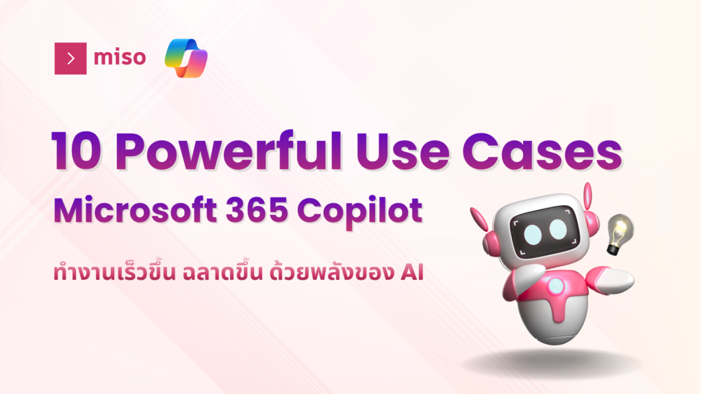ผู้ช่วย AI ที่ยกระดับการทำงานของคุณทั้งองค์กร ที่ถูกผสานเข้ากับเครื่องมือที่คุณใช้งานทุกวัน เช่น Word, Excel, Outlook และ Teams เพื่อช่วยให้การทำงานเร็วขึ้น แม่นยำขึ้น และมีประสิทธิภาพมากขึ้น