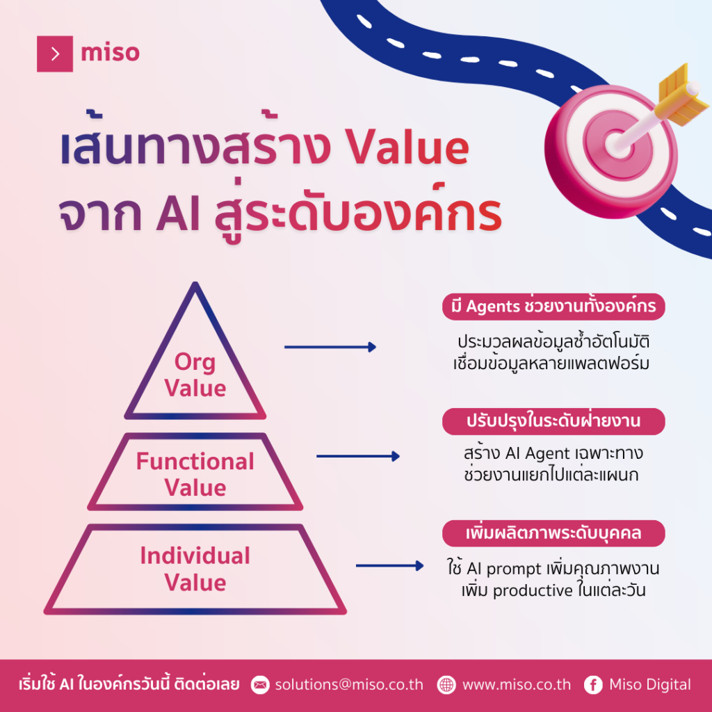 รู้หรือไม่ ในปี 2026 นี้ AI ไม่ได้เป็นเพียงเครื่องมือช่วยงานอีกต่อไป แต่เป็นพลังสำคัญในการยกระดับประสิทธิภาพขององค์กร ซึ่งเส้นทางการสร้าง Value ให้องค์กรของคุณนั้นเกิดขึ้นได้อย่างไรบ้าง MISO จะพามาดูกันเลยวันนี้!