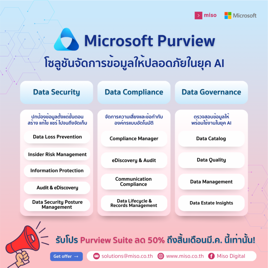 📣 รับโปรโมชัน ลด 50% Purview Suite (ราคานี้มีถึงแค่ 31 มี.ค. 2569 เท่านั้น)